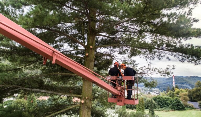 Quando il pino è particolarmente alto o instabile, utilizziamo piattaforme elevatrici per accedere alla chioma e lavorare in sicurezza anche nelle situazioni più complesse.